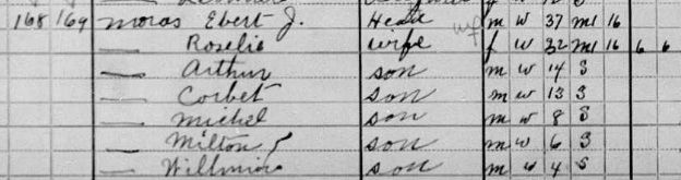 US Census of 1910 shows "Ebert" and Rosalie with five children. My grandfather Milton was five years old at the time. His name was Albert, not Ebert, but it is not unusual that the census taker misunderstood the French to English pronunciation.