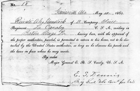 Sample Oath of Allegiance to the US for a 1st LA Cav Soldier POW.