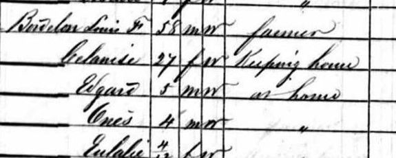 The 1870 Census shows Louis F and Felonise living next door to Auguste & Auline Dauzat. They had 3 children at home. This census does correctly show Ones (b.1866)