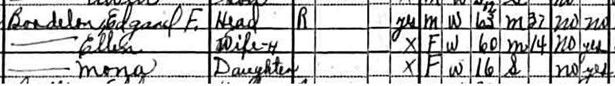 1930 Census shows Edgar with wife Ellen ?? and had one child, Mona, who was believed to have been adopted.